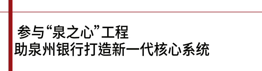 泉州银行新一代核心系统作为“泉之心”工程的核心组成,将是泉州银行实现战略愿景、优化业务、再造流程、加强管理的重要契机,是践行“科技兴行、科技强行”战略的重要保障,持续推进泉州银行适应市场模式的业态转变,重构前、中、后的业务逻辑,并由传统的自我循环转向开放合作的金融生态圈的重要举措,新一代核心系统建设工程将赋能泉州银行高质量开展,全面提升服务地方实体经济能力。